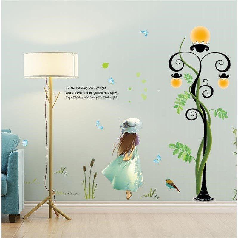 创意人物贴纸路灯下F的女孩墙贴卧室客厅楼道宿舍玄关楼梯装饰贴热门设计联盟服务商