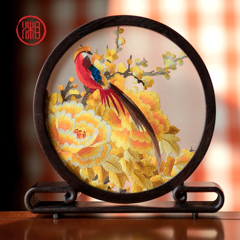 湘绣手工刺绣双面绣卧室书房桌台面圆屏摆件新中式艺术礼品热门设计联盟服务商