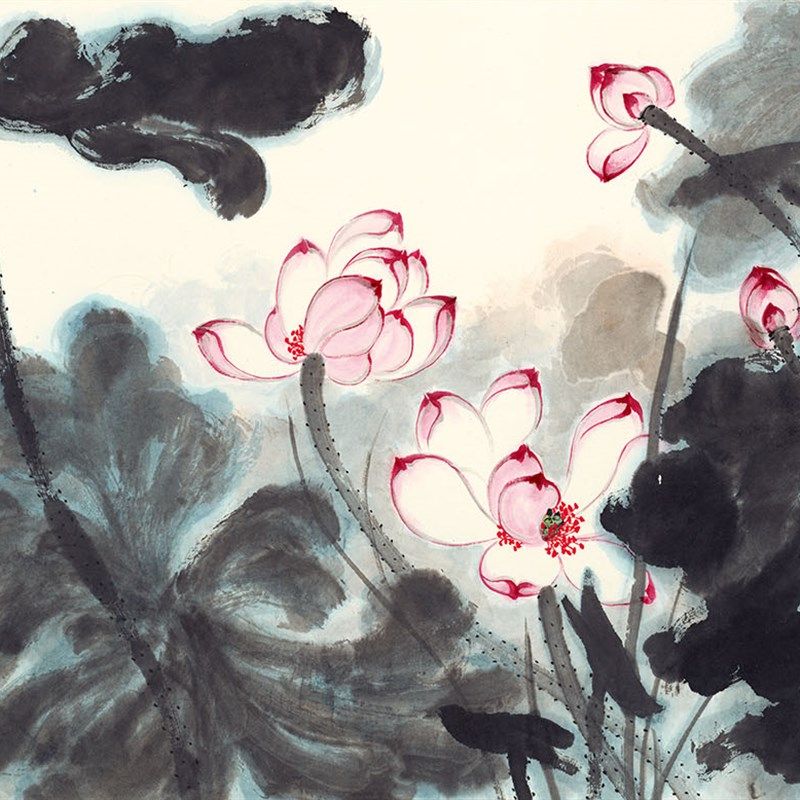 荷花植物花e卉横幅红荷未装裱非无框画心单幅图水墨画宣纸复制品热门设计联盟服务商